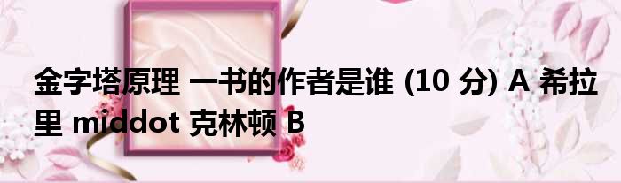 金字塔原理 一书的作者是谁 (10 分) A 希拉里 middot 克林顿 B