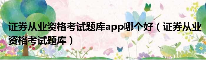 证券从业资格考试题库app哪个好(证券从业资格考试题库)