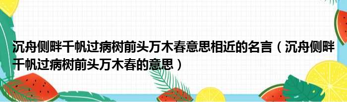 沉舟侧畔千帆过病树前头万木春意思相近的名言(沉舟侧畔千帆过病树前头万木春的意思)
