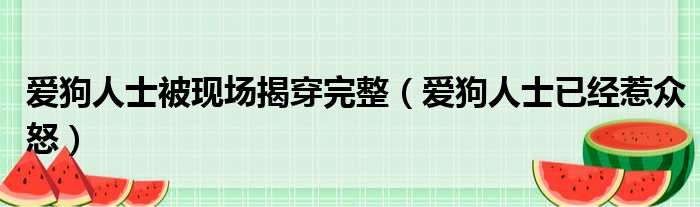 爱狗人士被现场揭穿完整(爱狗人士已经惹众怒)