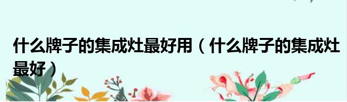 什么牌子的集成灶最好用(什么牌子的集成灶最好)