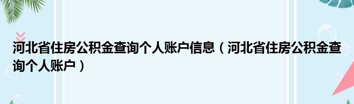 河北省住房公积金查询个人账户信息(河北省住房公积金查询个人账户)