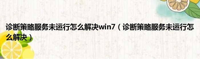诊断策略服务未运行怎么解决win7(诊断策略服务未运行怎么解决)