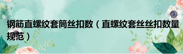 钢筋直螺纹套筒丝扣数(直螺纹套丝丝扣数量规范)