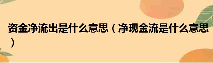 大家好,小东方来为大家解答以上的问题。资金净流出是什么意思,净现金流是什么意思这个很多人还不知道,现在让我们一起来看看吧!