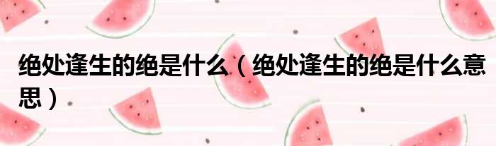 绝处逢生的绝是什么(绝处逢生的绝是什么意思)
