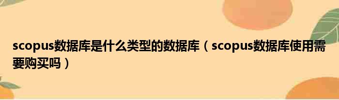 scopus数据库是什么类型的数据库(scopus数据库使用需要购买吗)