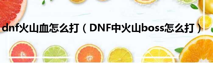 dnf火山血怎么打(DNF中火山boss怎么打)