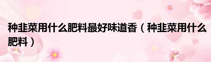 种韭菜用什么肥料最好味道香(种韭菜用什么肥料)