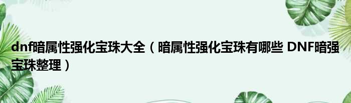dnf暗属性强化宝珠大全(暗属性强化宝珠有哪些 DNF暗强宝珠整理)
