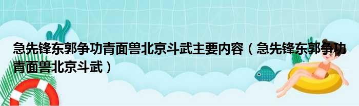 急先锋东郭争功青面兽北京斗武主要内容(急先锋东郭争功青面兽北京斗武)