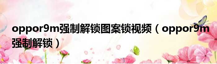 oppor9m强制解锁图案锁视频(oppor9m强制解锁)