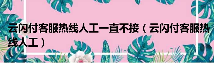 云闪付客服热线人工一直不接(云闪付客服热线人工)
