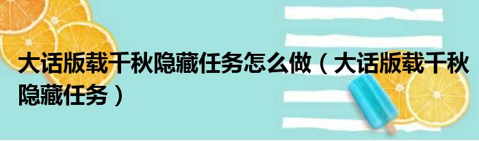大话版载千秋隐藏任务怎么做(大话版载千秋隐藏任务)