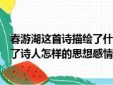 大家好,小东方来为大家解答以上的问题。春游湖这首诗描绘了什么季节什么地点的景色,春游湖表达了诗人怎样的思想感情这个很多人还不知道,现 浏览全文>>