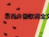 大家好,小东方来为大家解答以上的问题。忽而今夏歌词全文可复制,忽而今夏歌词这个很多人还不知道,现在让我们一起来看看吧!1、作词:汪苏 浏览全文>>