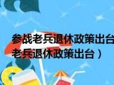 大家好,小东方来为大家解答以上的问题。参战老兵退休政策出台(两参老兵特大喜讯是真的吗),参战老兵退休政策出台这个很多人还不知道,现在让 浏览全文>>