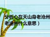 大家好,小东方来为大家解答以上的问题。分析心在天山身老沧州的表达技巧和思想内容,心在天山身老沧州什么意思这个很多人还不知道,现在让我 浏览全文>>