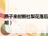 大家好,小东方来为大家解答以上的问题。燕子来时新社梨花落后清明翻译,燕子来时新社梨花落后清明这个很多人还不知道,现在让我们一起来看看 浏览全文>>