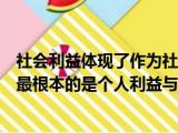 大家好,小东方来为大家解答以上的问题。社会利益体现了作为社会成员的个人的,个人与社会的关系最根本的是个人利益与社会利益的关系这个很 浏览全文>>