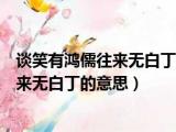 大家好,小东方来为大家解答以上的问题。谈笑有鸿儒往来无白丁的意思是什么下一句,谈笑有鸿儒往来无白丁的意思这个很多人还不知道,现在让我 浏览全文>>