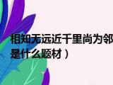 大家好,小东方来为大家解答以上的问题。相知无远近千里尚为邻是什么题材,相知无远近万里尚为邻是什么题材这个很多人还不知道,现在让我们一 浏览全文>>