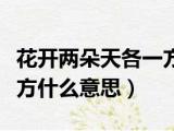 大家好,小东方来为大家解答以上的问题。花开两朵天各一方出自哪里,花开两朵天各一方什么意思这个很多人还不知道,现在让我们一起来看看吧! 浏览全文>>
