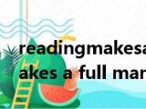 大家好,小东方来为大家解答以上的问题。readingmakesafullman翻译,reading makes a full man这个很多人还不知道,现在让我们一起来看看 浏览全文>>