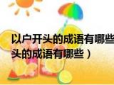 大家好,小东方来为大家解答以上的问题。以户开头的成语有哪些成语有哪些,ldquo 户 rdquo 字开头的成语有哪些这个很多人还不知道,现在让 浏览全文>>