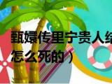 大家好,小东方来为大家解答以上的问题。甄嬛传里宁贵人结局,甄嬛传里面的宁贵人是怎么死的这个很多人还不知道,现在让我们一起来看看吧!1 浏览全文>>