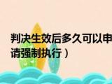 大家好,小东方来为大家解答以上的问题。判决生效后多久可以申请强制执行,判决生效后多久可以申请强制执行这个很多人还不知道,现在让我们一 浏览全文>>