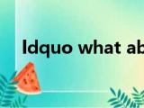 大家好,小东方来为大家解答以上的问题。ldquo what about rdquo 是什么意思这个很多人还不知道,现在让我们一起来看看吧!1、what abou 浏览全文>>