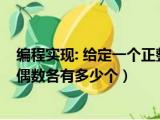 大家好,小东方来为大家解答以上的问题。编程实现: 给定一个正整数n,给定n个正整数请统计奇数和偶数各有多少个这个很多人还不知道,现在让 浏览全文>>