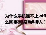 大家好,小东方来为大家解答以上的问题。为什么手机连不上wifi网络拒绝接入,手机连不上wifi是怎么回事网络拒绝接入这个很多人还不知道,现在 浏览全文>>