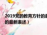 大家好,小东方来为大家解答以上的问题。2019党的教育方针的最新表述是什么,2019党的教育方针的最新表述这个很多人还不知道,现在让我们一起 浏览全文>>
