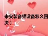 大家好,小东方来为大家解答以上的问题。未安装音频设备怎么回事,未安装任何音频输出设备怎么解决这个很多人还不知道,现在让我们一起来看看 浏览全文>>