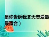 大家好,小东方来为大家解答以上的问题。是你告诉我冬天恋爱最适合搞笑视频,是你告诉我冬天恋爱最适合这个很多人还不知道,现在让我们一起来 浏览全文>>