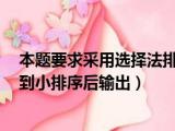 大家好,小东方来为大家解答以上的问题。本题要求采用选择法排序,本题要求将给定的n个整数从大到小排序后输出这个很多人还不知道,现在让我 浏览全文>>