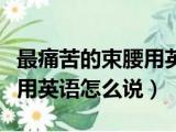 大家好,小东方来为大家解答以上的问题。最痛苦的束腰用英语怎么说写,最痛苦的束腰用英语怎么说这个很多人还不知道,现在让我们一起来看看吧 浏览全文>>