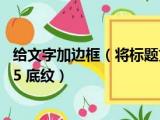 大家好,小东方来为大家解答以上的问题。给文字加边框,将标题文字加2 25磅边框线白色背景1深色25 底纹这个很多人还不知道,现在让我们一起 浏览全文>>