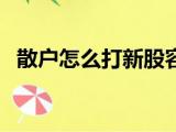 大家好,小东方来为大家解答以上的问题。散户怎么打新股容易中,散户怎么打新股这个很多人还不知道,现在让我们一起来看看吧!1、对拟发行的 浏览全文>>