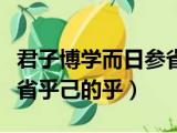 大家好,小东方来为大家解答以上的问题。君子博学而日参省乎己翻译,君子博学而日参省乎己的乎这个很多人还不知道,现在让我们一起来看看吧! 浏览全文>>