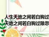 大家好,小东方来为大家解答以上的问题。人生天地之间若白驹过隙忽然而已这句话是什么意思,人生天地之间若白驹过隙忽然而已的意思这个很多 浏览全文>>