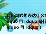 大家好,小东方来为大家解答以上的问题。且听风吟想表达什么意思,ldquo 你们且听我说 rdquo 的 ldquo 且 rdquo 是什么意思 和 ldq 浏览全文>>