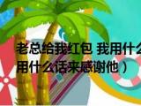 大家好,小东方来为大家解答以上的问题。老总给我红包 我用什么话来感谢他的话,老总给我红包 我用什么话来感谢他这个很多人还不知道,现在 浏览全文>>