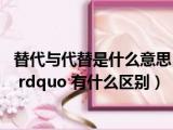 大家好,小东方来为大家解答以上的问题。替代与代替是什么意思,ldquo 代替 rdquo 和 ldquo 替代 rdquo 有什么区别这个很多人还不知 浏览全文>>