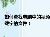 大家好,小东方来为大家解答以上的问题。如何查找电脑中的视频文件,如何在电脑里查找含有某个关键字的文件这个很多人还不知道,现在让我们一 浏览全文>>
