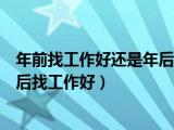 大家好,小东方来为大家解答以上的问题。年前找工作好还是年后找工作好文案,年前找工作好还是年后找工作好这个很多人还不知道,现在让我们一 浏览全文>>