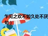 大家好,小东方来为大家解答以上的问题。乍见之欢不如久处不厌的意思,乍见之欢不如久处不厌下一句这个很多人还不知道,现在让我们一起来看看 浏览全文>>