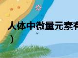 大家好,小东方来为大家解答以上的问题。人体中微量元素有哪些,人体微量元素有哪些这个很多人还不知道,现在让我们一起来看看吧!1、人体是 浏览全文>>